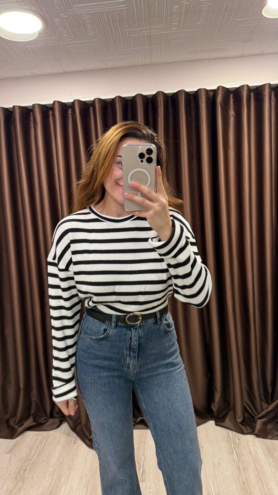 Çizgili Triko Siyah